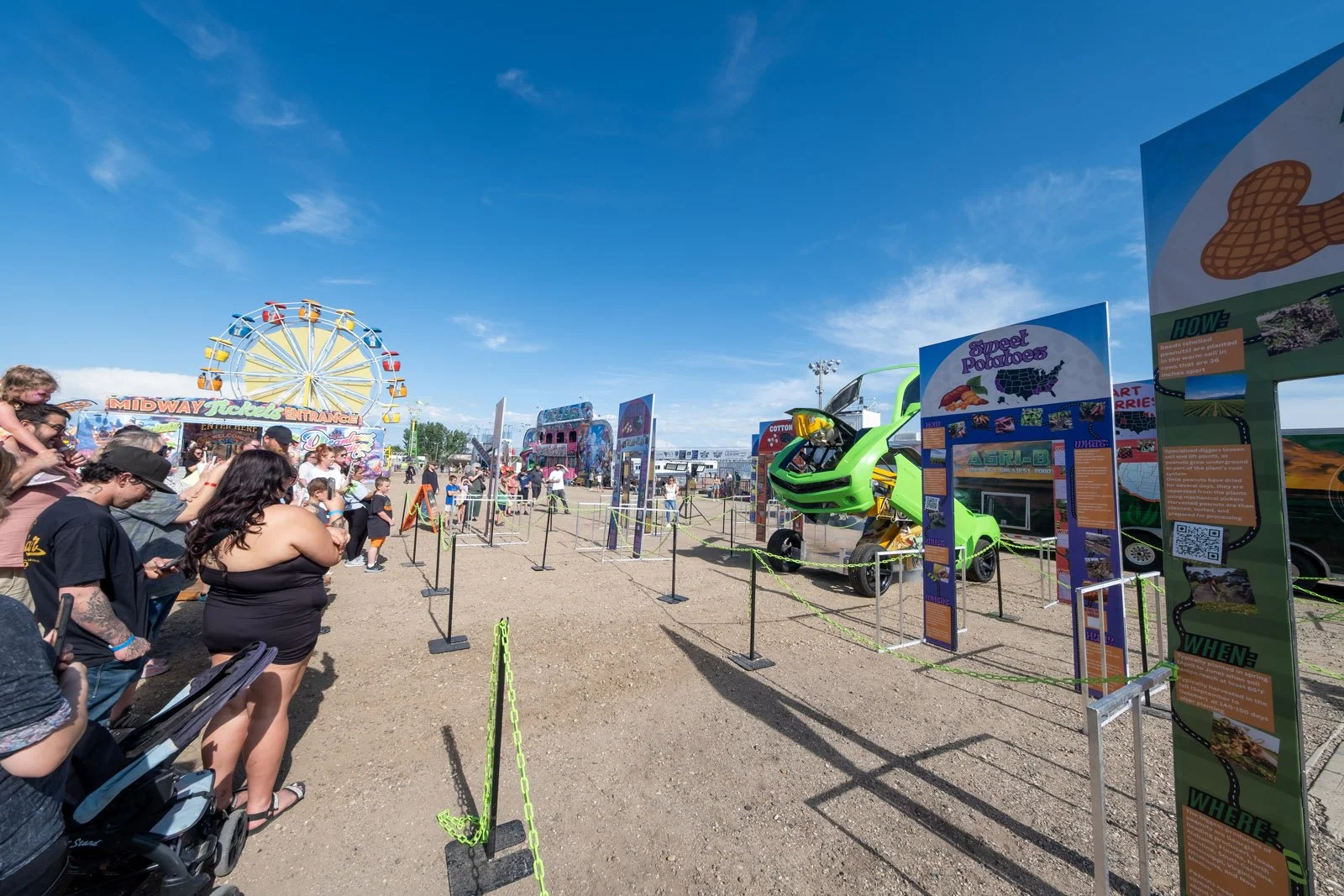 Agri-Bot isn’t just a showstopper — it’s a fully interactive educational exhibit designed to entertain and inform. Fair-goers of all ages can walk through silo-shaped displays featuring America’s top crops. Each station includes engaging facts and QR codes that unlock fun, short videos from Agri-Bot himself, teaching you about where the crop comes from, how it grows, and what it's used for.