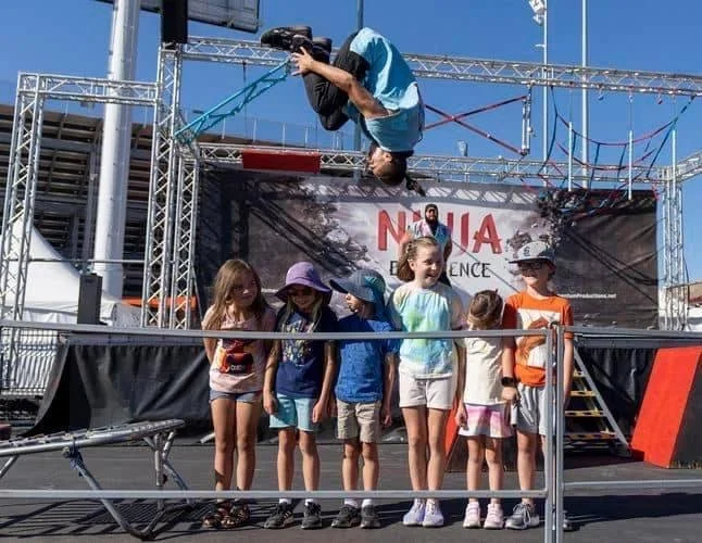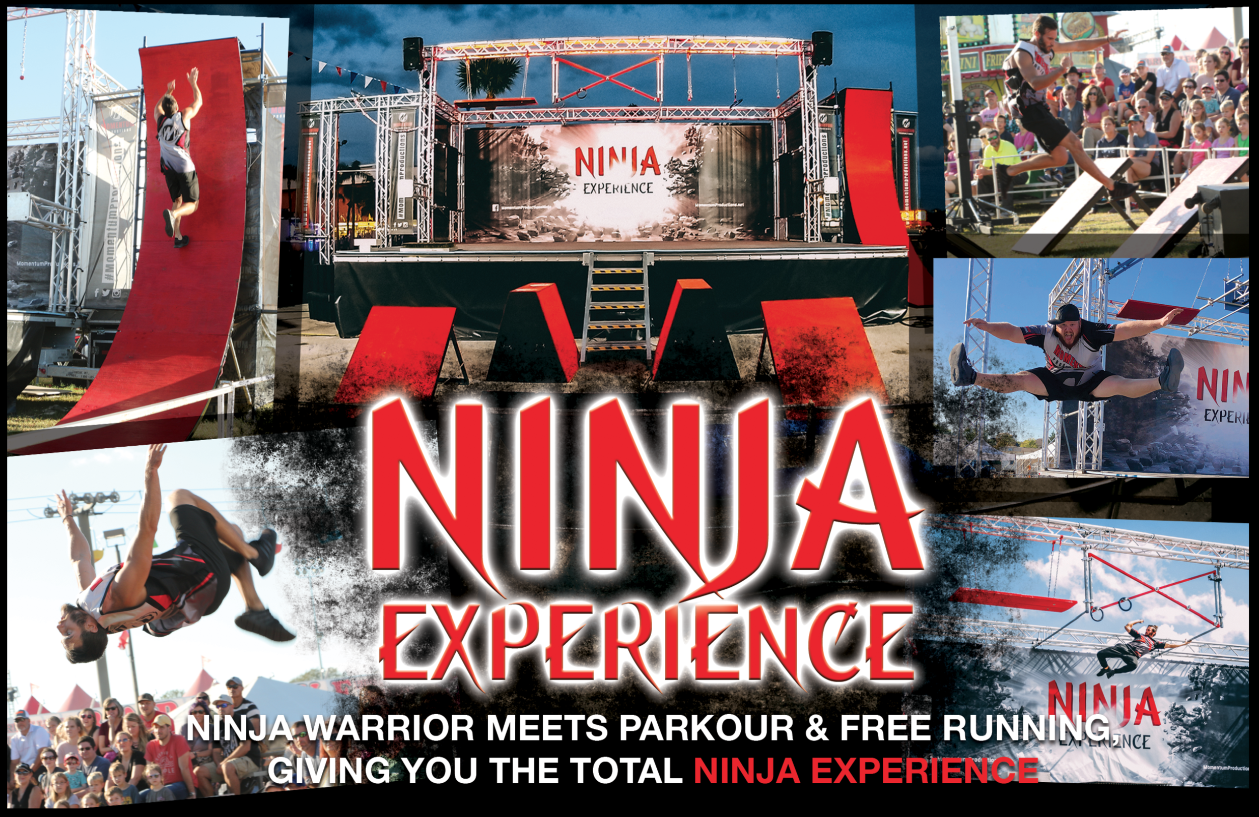 Prepare yourself for highflying, jaw dropping, in your face action with the Ninja Experience! This one of a kind stage production will “quench your thirst” for comedy and danger as our ninjas take it to the extreme. Crowds will watch in amazement as these top parkour athletes test their strength and agility on our intense obstacle course. Witness stunts only seen on TV until now, including the dreaded 15 foot warped wall. Become a part of the experience with hilarious audience participation and stunts that will have everyone on the edge of their seats. After the show, meet your favorite Ninjas for photos and autographs - even test your own ninja skills by breaking boards with the team. With unexpected special effects and full turnkey production, the Ninja Experience is like no other.