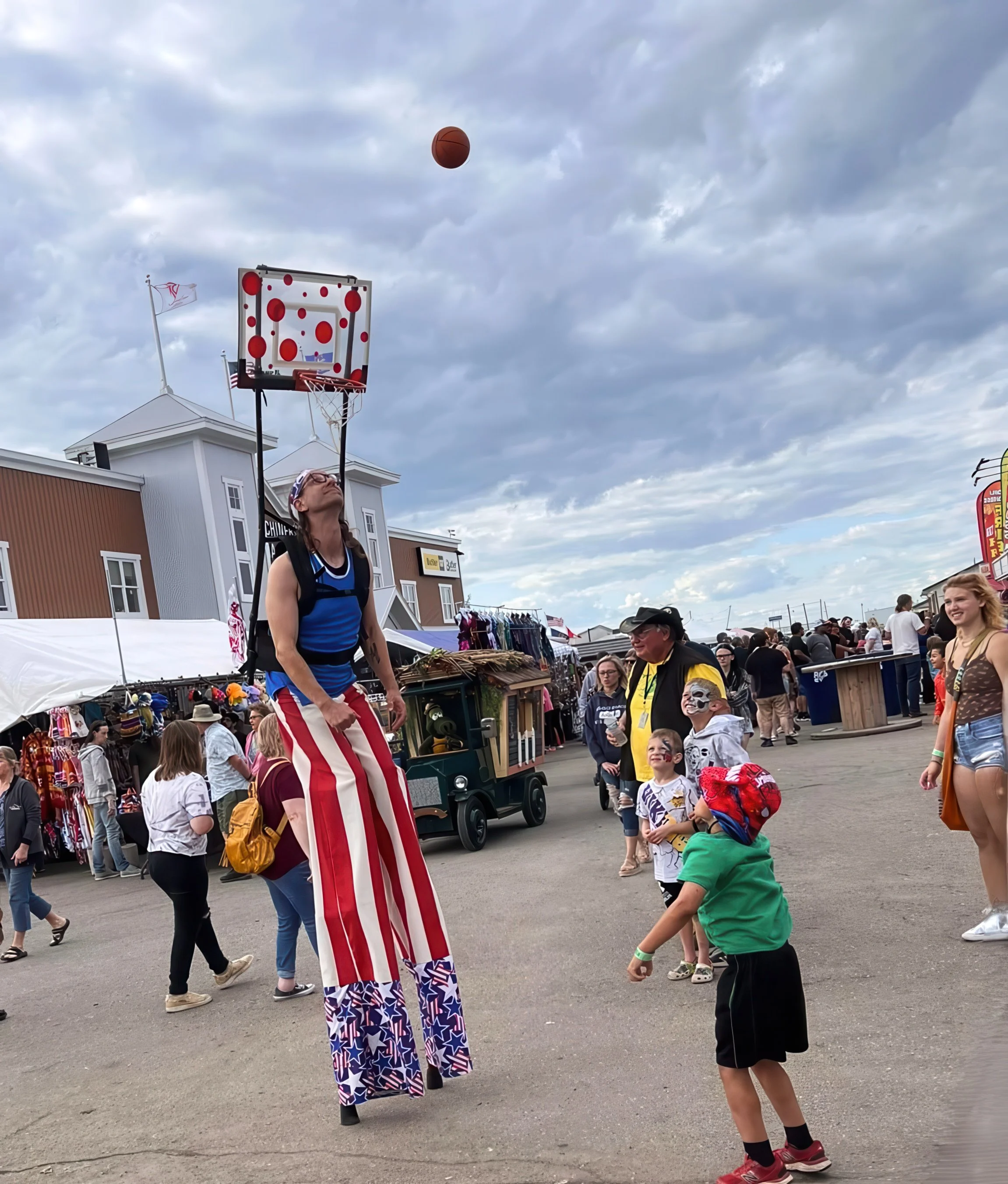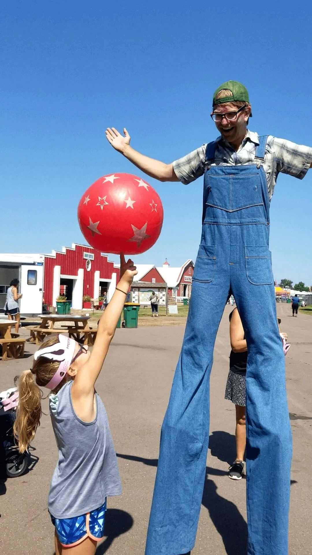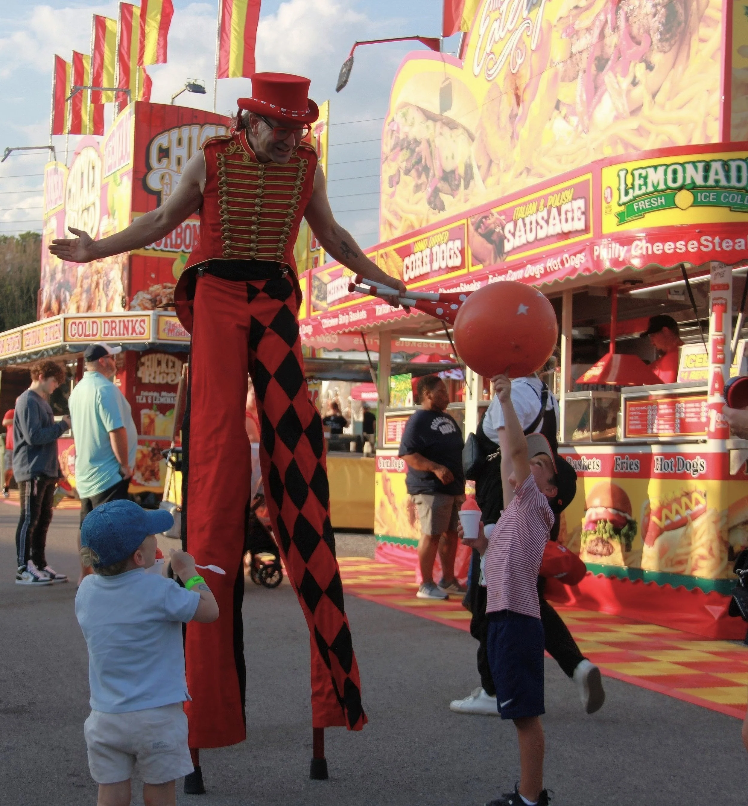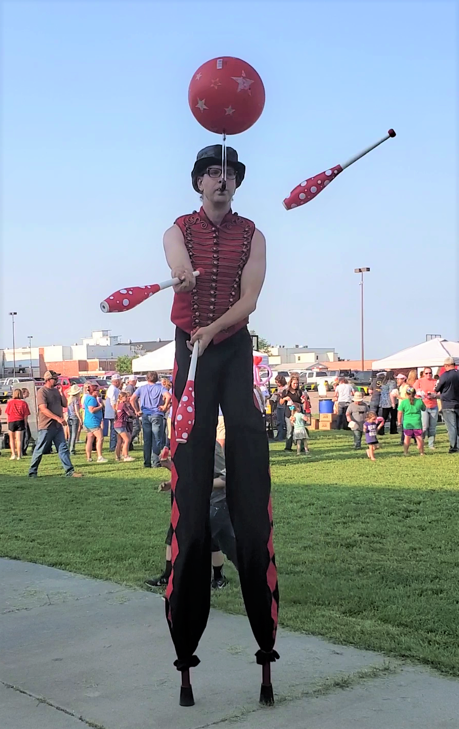 The circus has come to town when Peter arrives at your fair. Everyone will be talking about this larger than life stilt walker and award winning juggler. His hilarious stage show includes fire juggling on a tight rope and the nearly impossible blindfold knife juggling stunt.