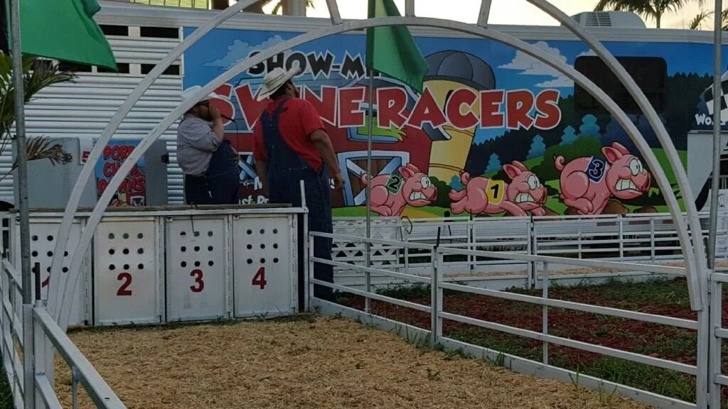 The Show-Me Swine Racers have proven to be an excellent crowd pleaser entertaining with a touch of class. Our pigs consist of three different species of pigs. Each species run a separate heat race. Therefore, we have three separate races during each show and that equals to three times the fun!